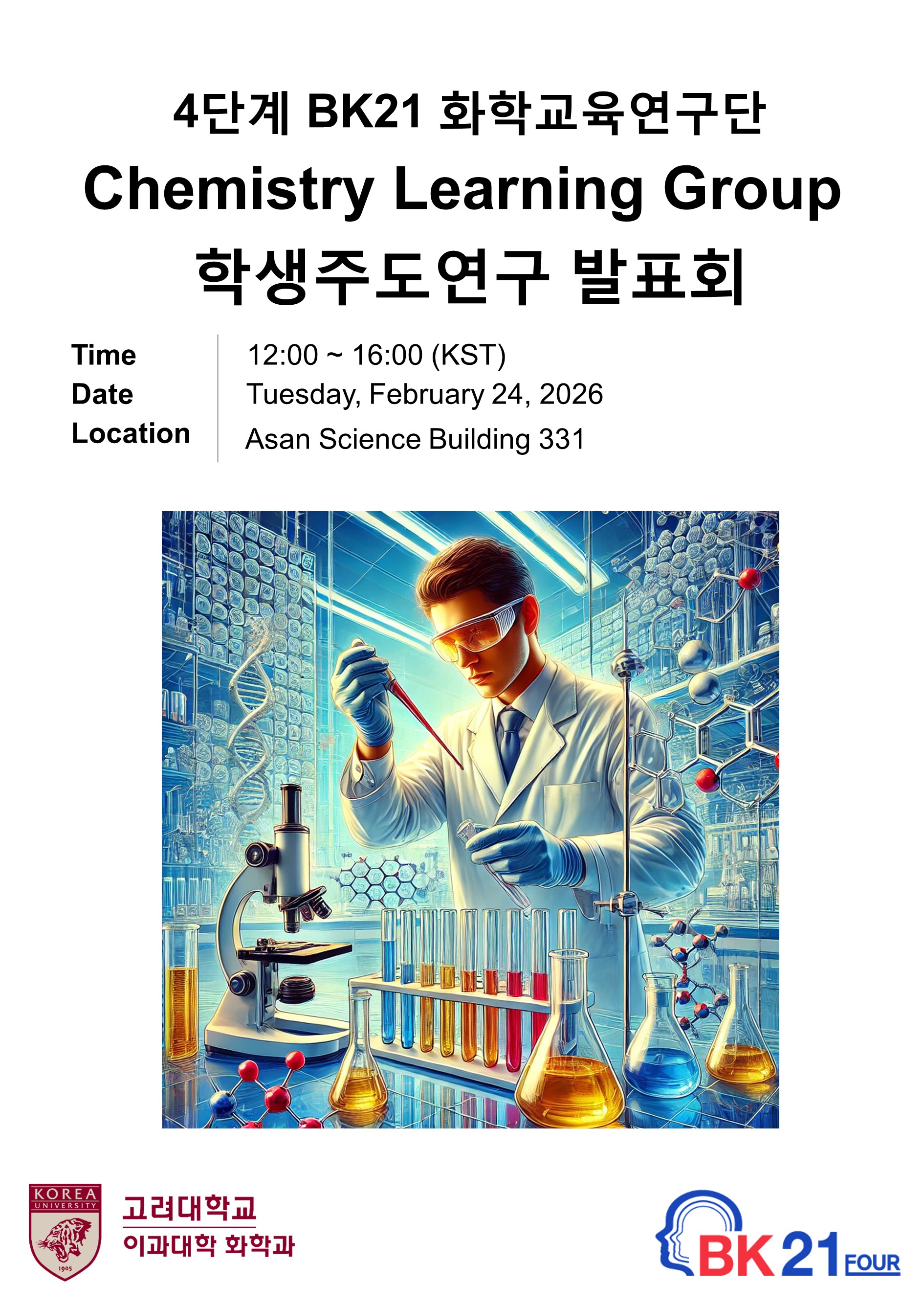 | 제목 | 4단계 BK21 화학교육연구단 Chemistry Learning Group 연구발표회 개최 안내-2026/02/24(화) |